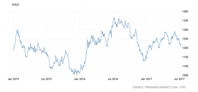 紐約商品期貨交易所(COMEX)8 月黃金期貨 7 月 17 日收盤上漲 0.5%、收 1,233.70 美元,創 6 月 30 日以來收盤高。