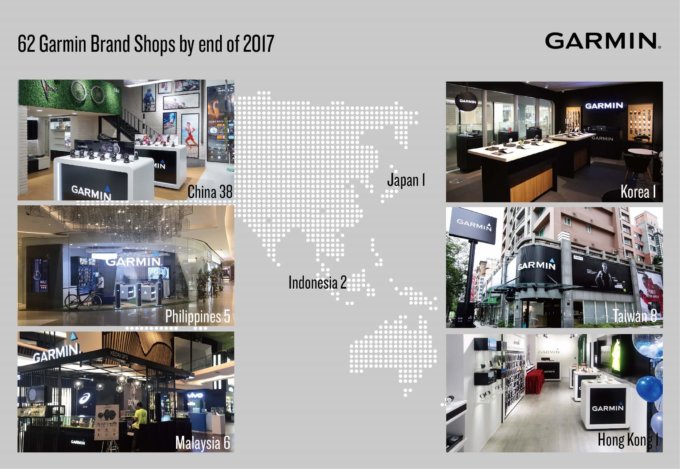 ▲ Garmin 亞洲市場全方位通路布局,預計 2017 年底全亞洲將有 62 家 Garmin 品牌體驗館。