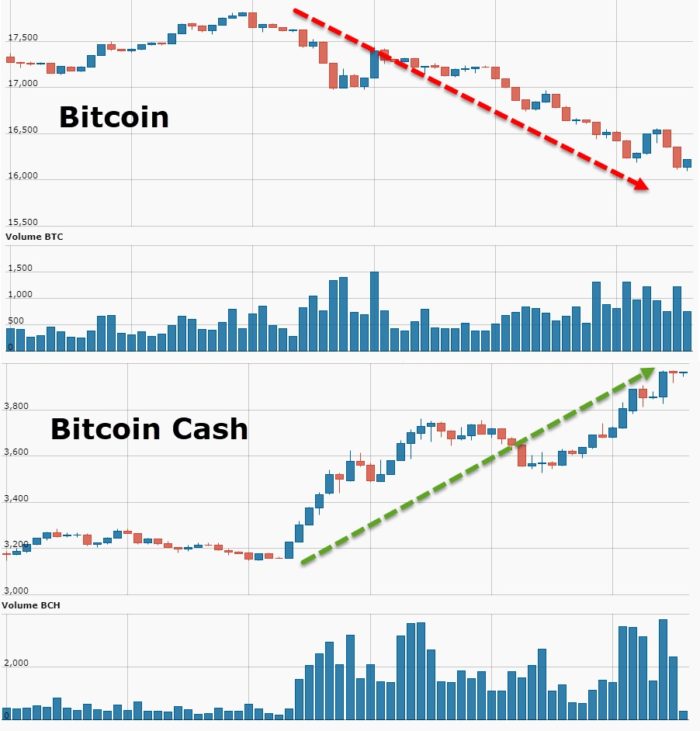 ZeroHedge、CNBC、news.com.au 報導,傳統比特幣 8 月 1 日硬分叉之後,出現新版比特幣「比特幣現金」。支持者高呼,「比特幣現金」才是正宗比特幣,加上虛幣平台龍頭 Coinbase 19 日宣布支援「比特幣現金」,允許該平台的 3,000 萬用戶買賣寄送此一虛擬貨幣。消息一出,傳統比特幣閃崩 15%,從 18,400 美元、跌至 15,580 美元。