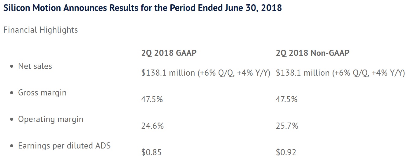 快閃記憶體控制 IC 廠慧榮(Silicon Motion)週二公布第二季財報,營收年增 4%,來到 1.38 億美元,約略符合預期。(finanznachrichten)