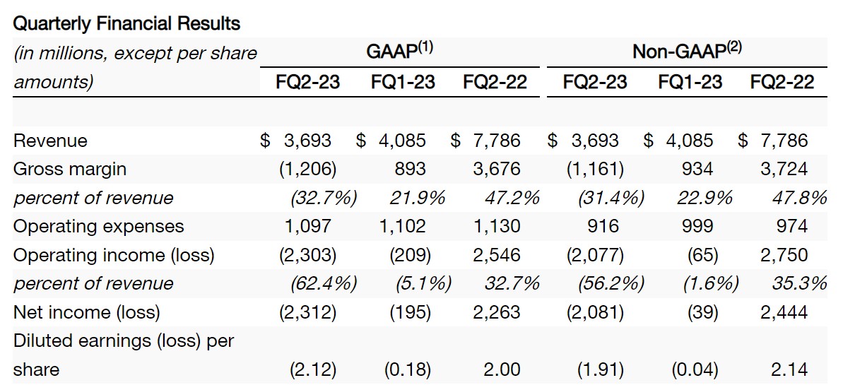 美光2023會計年度第二季GAAP虧損金額達23.1億美元。根據FactSet的統計,美光先前最高GAAP虧損紀錄出現在2003年度第二季(19.4億美元)。